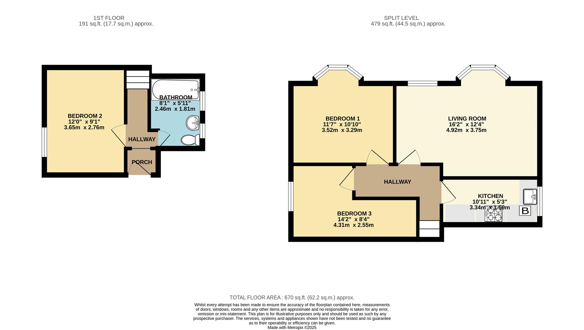 The accommodation includes three generously sized bedrooms, each offering plenty of natural light and flexibility for use as sleeping quarters, a home office, or additional storage. The living room is bright and spacious, providing the perfect area for relaxation and entertaining. A well-appointed family bathroom completes the layout, offering both practicality and style.