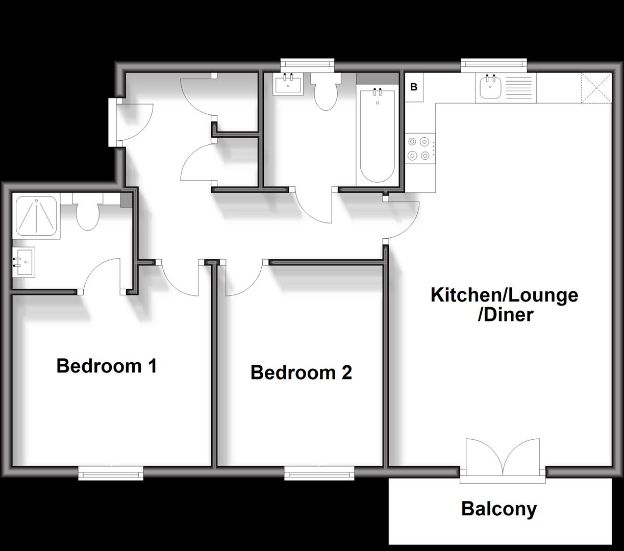 The apartment enjoys a large open plan living room/kitchen with a number of built in integrated appliances and good sized balcony off the lounge area. There are 2 double bedrooms with the MAIN bedroom having an ensuite, there is also a family bathroom.