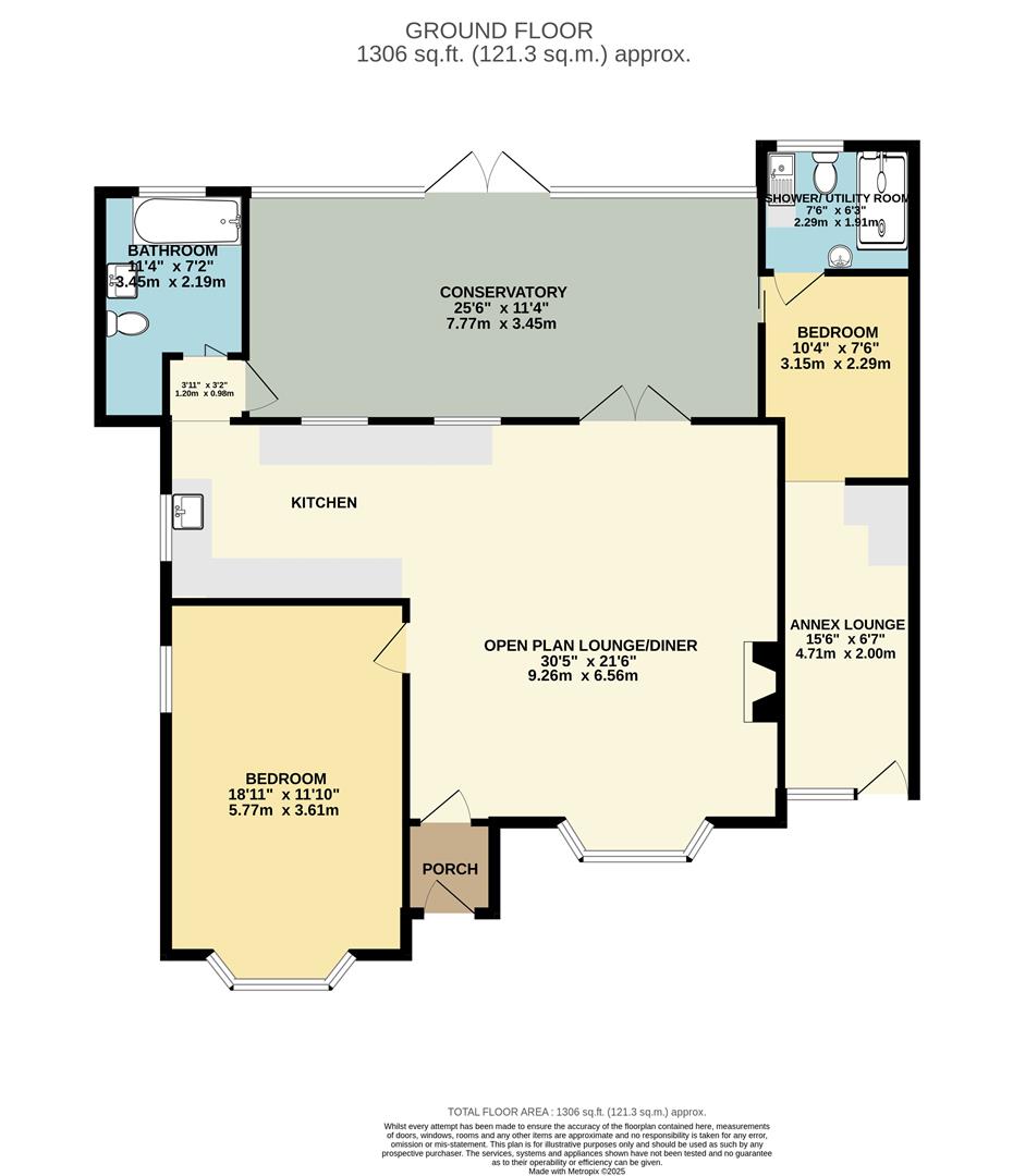 The property features two double bedrooms and two bathrooms, with one bedroom forming part of a self-contained annex attached to the main bungalow. This setup is ideal for those looking for multi-generational living, a private guest suite, or even a home office or rental opportunity.
