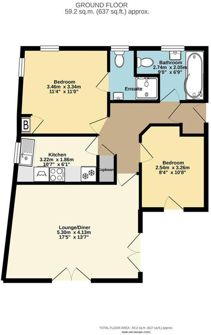 This modern apartment enjoys 2 double bedrooms, one with access to the private outside space, a spacious lounge, again with direct access to outside space, family bathroom and ensuite shower room and a fully integrated high gloss kitchen.